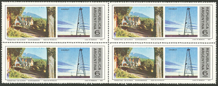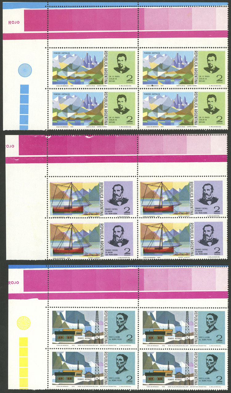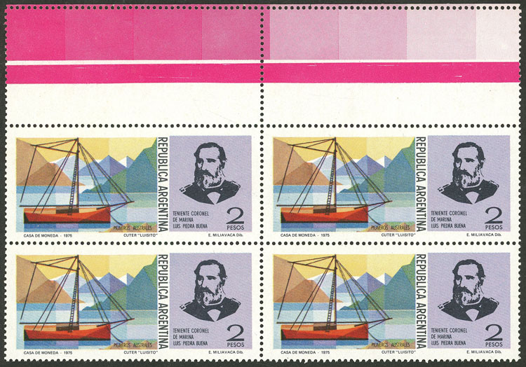 GJ.1690CA, Piedra Buena / Southern pioneers, block of 4 with top labels (Image)