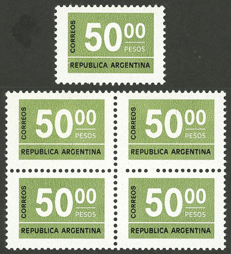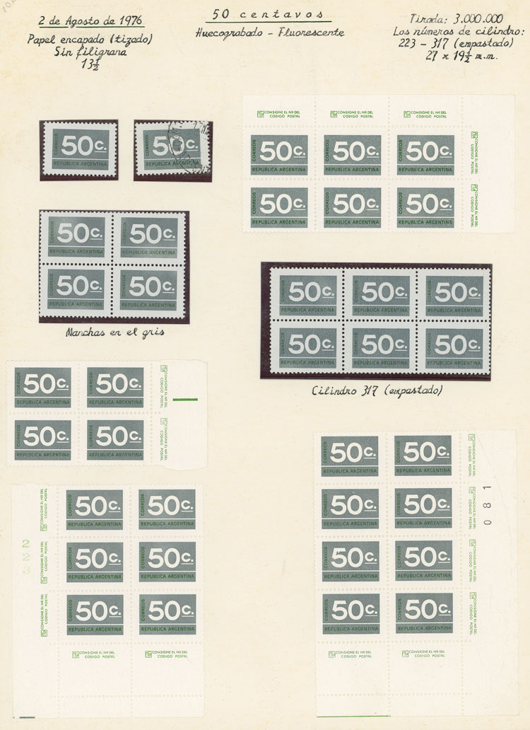 50c. Figures, some of the varieties of this value on album page, there are blocks with printing roll number, VF (Image)