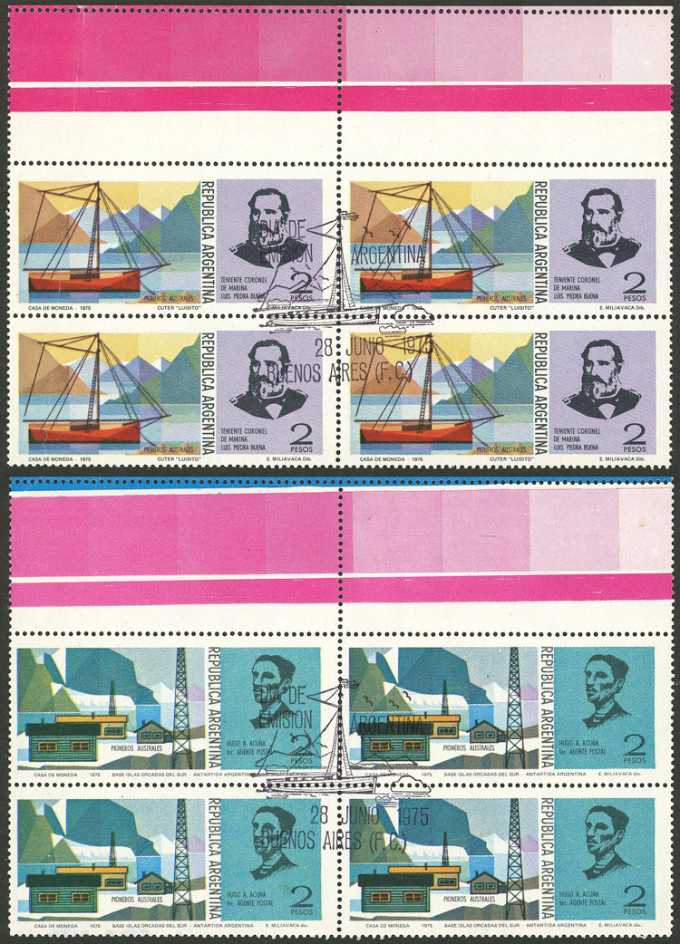 GJ.1690CA + 1693CA, Southern pioneers, blocks of 4 with top labels, with first day pmk (Image)