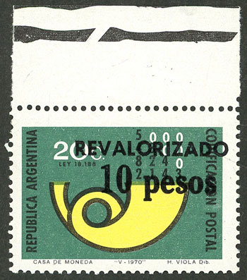 GJ.1704a, sheet margin, VARIETY: "1" below the V of REVALORIZADO (Image)