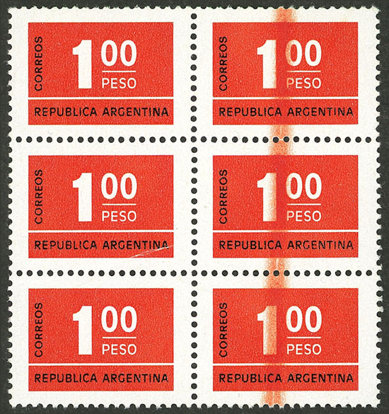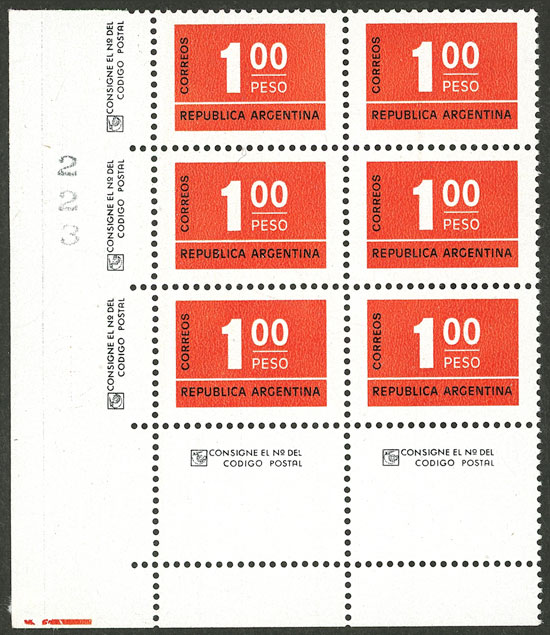 GJ.1721CJ, block of 6 printed on chalky fluorescent paper, with labels below and number of printing roll (Image)