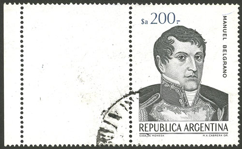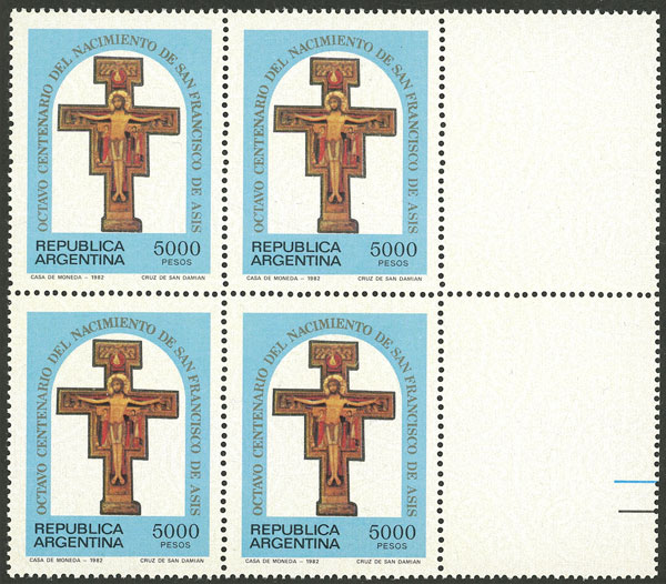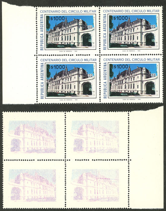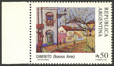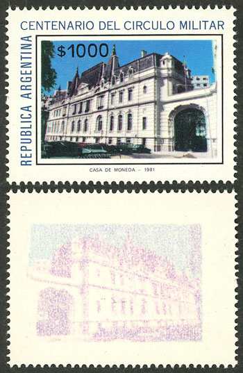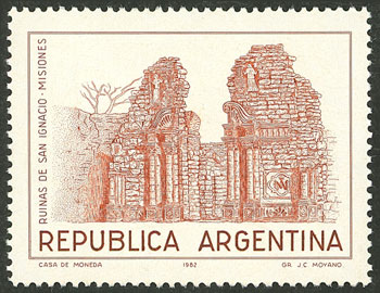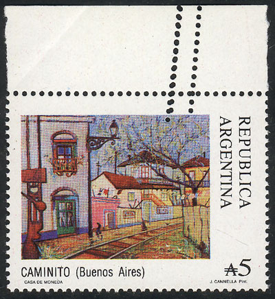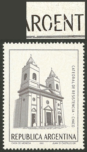 GJ.2054a, Cathedral of Resistencia, with face value OMITTED, with additional variety: Unprinted diagonal line over "E" and "N" of ARGENTINA (plate flaw?), excellent quality and very rare! (Image)
