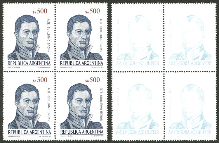 block of 4 with VARIETY: gray-blue offset impression on back (Image)