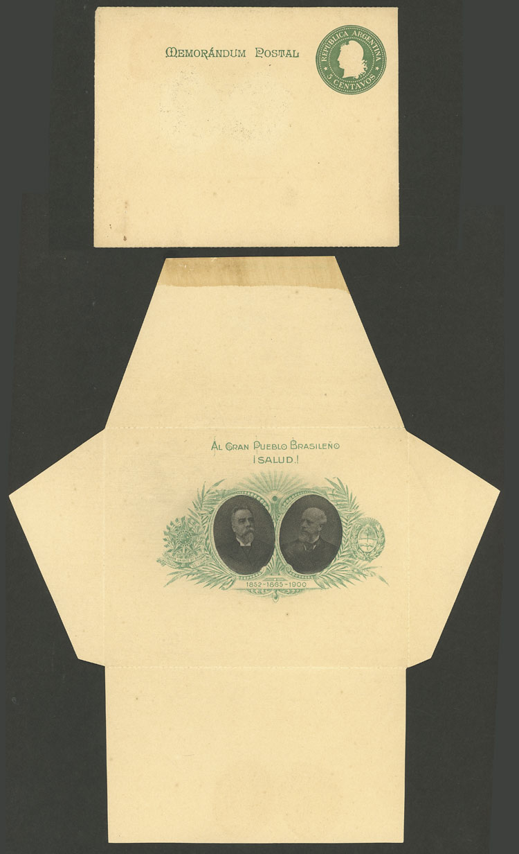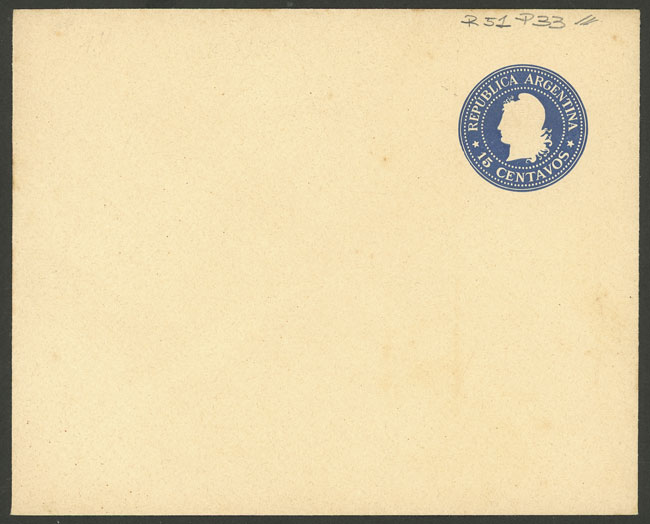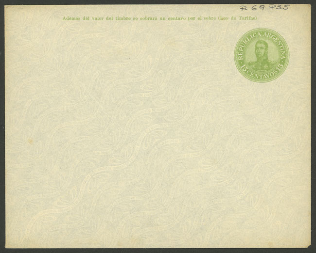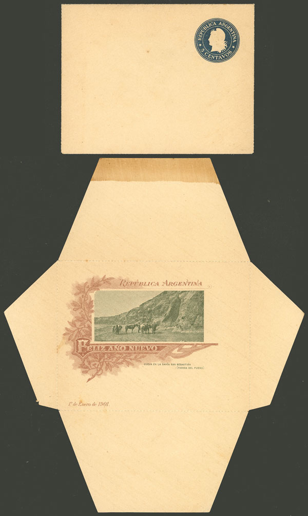 SZC-13-15-V, 5c letter sheet, view of Cueva en la Bahía San Sebastián (Tierra del Fuego) printed inside, in olive color (Image)