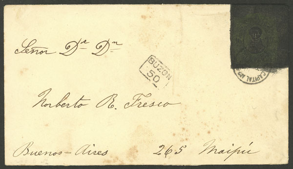 official cover used in Buenos Aires in SE/1881, with "BUZÓN 50" mark (Image)