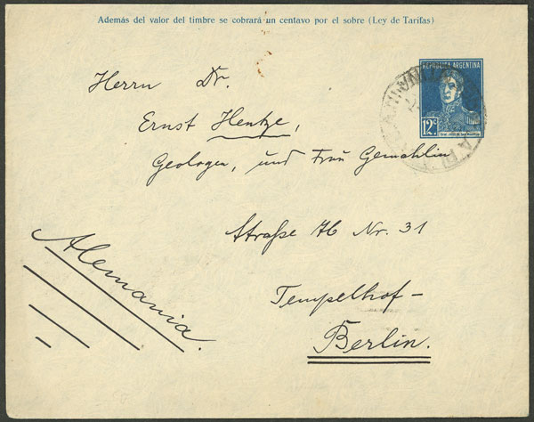 12c. San Martín with period after the value, envelope sent from La Plata to Germany (Image)