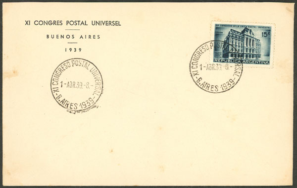 with corner card and postmark of XI UPU Congress for 1/AP/1939 (Image)