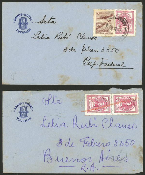 Covers with corner card of Savoy Hotel - Tucumán, used in 1940s (Image)