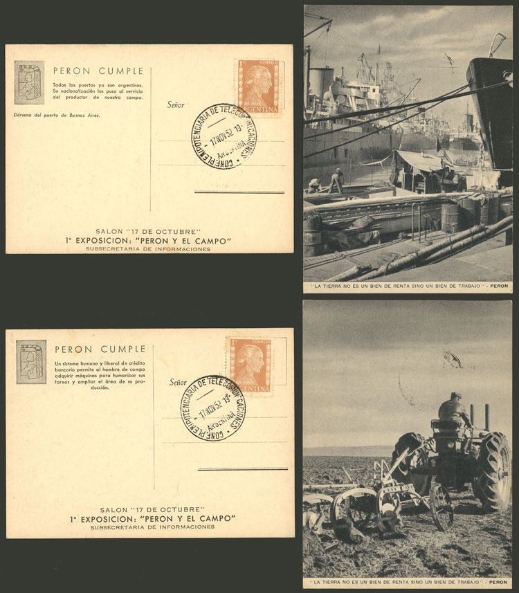 Cards with different views of the "PERÓN CUMPLE" issue, with postmarks of the "CONF. PLENIPOTENCIARIA DE TELECOMUNICACIONES" of 17/NO/1952, very nice (Image) (Image-02)