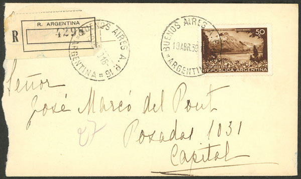 Cover used in Buenos Aires on 19/AP/1939, franked with 50c. (GJ.827) (Image) (Image-02)