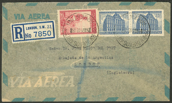 cover sent from Buenos Aires to England, franked with 95c. (Image)