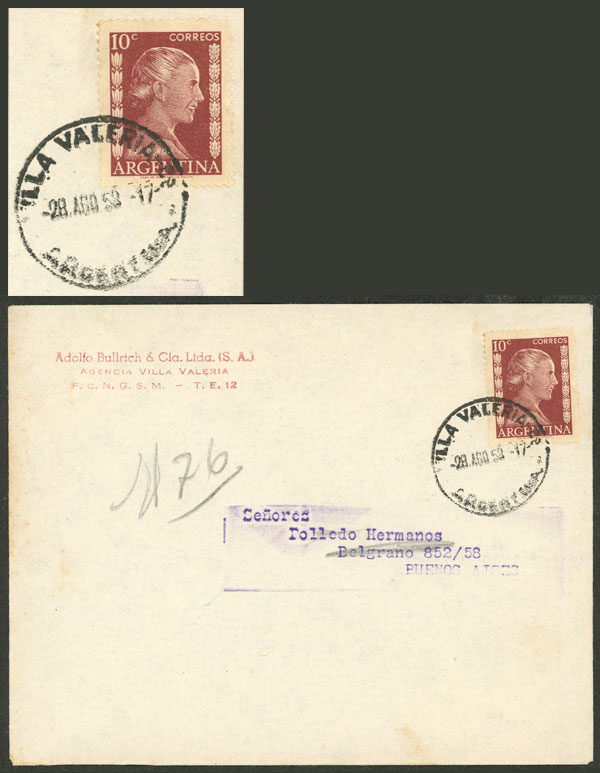 Cover with postmark of VILLA VALERIA (Córdoba), sent to B.Aires on 28/AU/1952, scarce (Image) (Image-02)