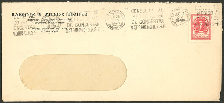 cover with slogan cancel "Consult a physician before getting married Matrimonio D.N.S.R." of 29/JUL/1948 (Image)