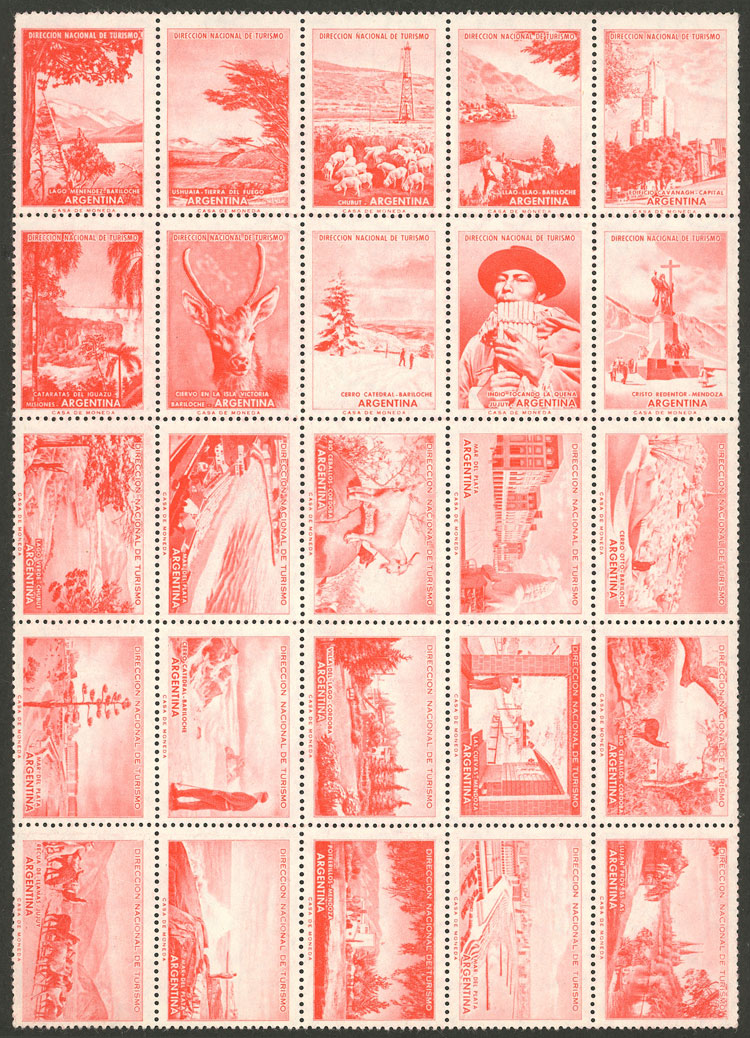 Cinderellas of the Board of Tourism, block of 25 cinderellas with different views of Argentina, in red, very nice (Image)
