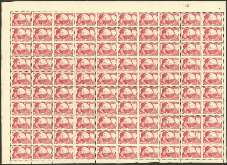 Cinderella commemorating Jean Mermoz, issued by the Post at the request of the French Embassy, complete sheet of 100, VF quality (Image)