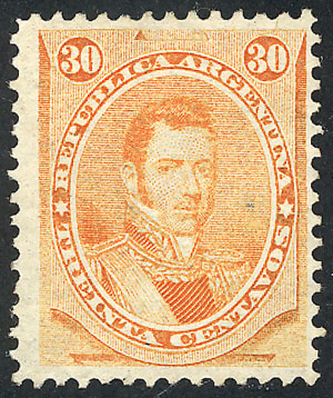 30c. Alvear, excellent re-gummed example, VF appearance (Image)