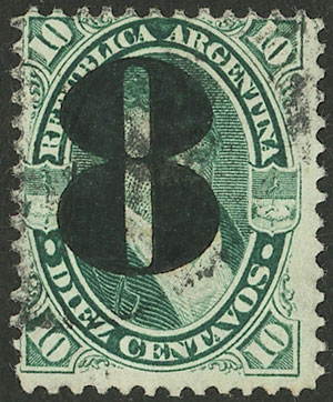 8c on 10c, used in Buenos Aires on 20/AP/1877 (Image)