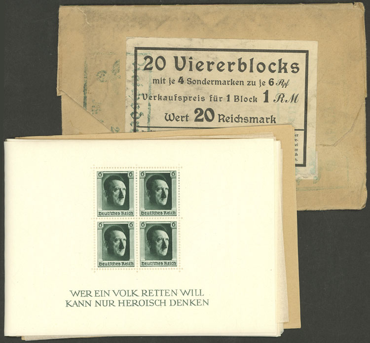 1937 Hitler 48th birthday, 16 MNH and perfect souvenir sheets in the envelope of the Post which originally contained 20 sheets, excellent quality, rare lot, Scott catalog value US$840 (Image)