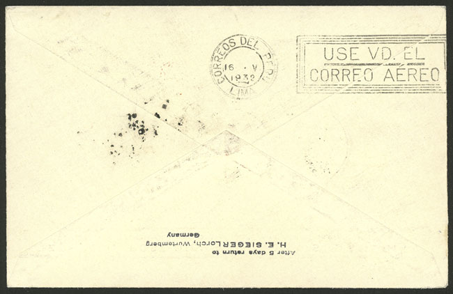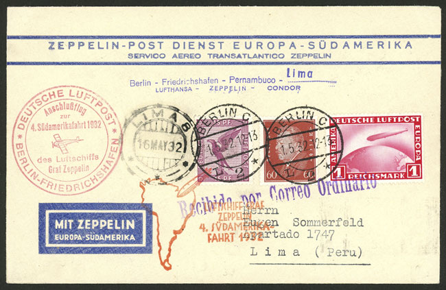 1/MAY/1932 Berlin to Lima (Peru), cover flown by Zeppelin on 4th flight to South America, excellent quality! (Image) (Image-02)
