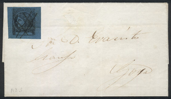 blue, on COMPLETE FOLDED LETTER sent to Goya from YAGUARETÉ CORÁ on 29/SE/1863, VF and interesting! (Image)