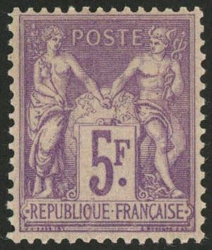 95, 1877/80 5Fr. violet on lilac, lightly hinged, very fine quality, catalog value Euros 600 (Image)