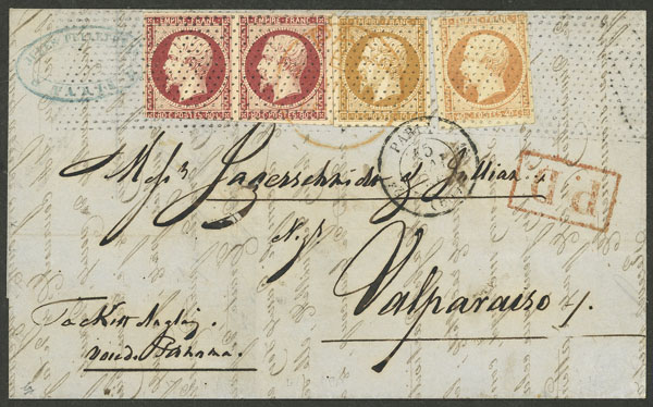 15/MAY/1853 Paris to Valparaiso (Chile), entire letter franked with 2,10Fr., fantastic! (Image) (Image-02)