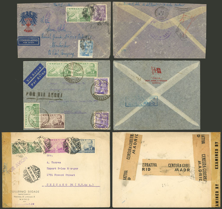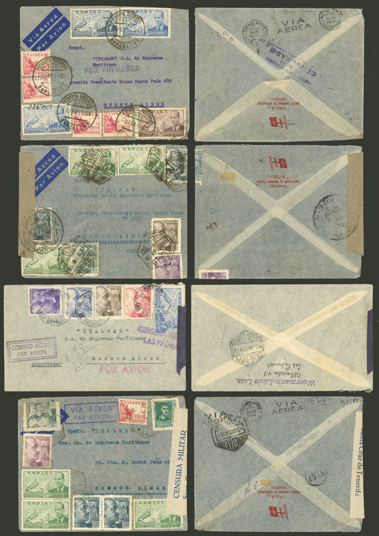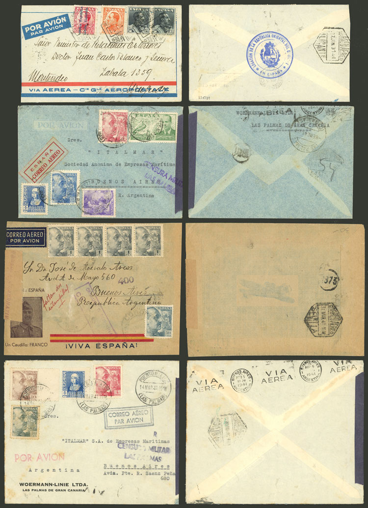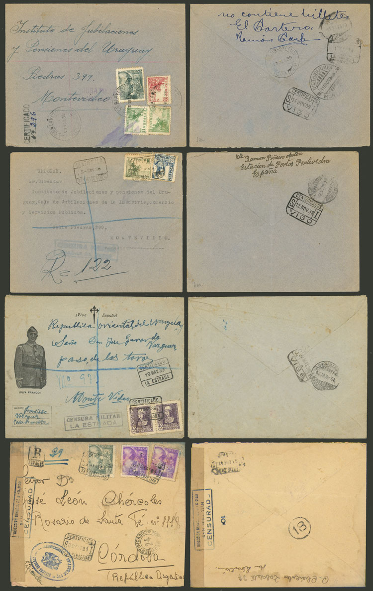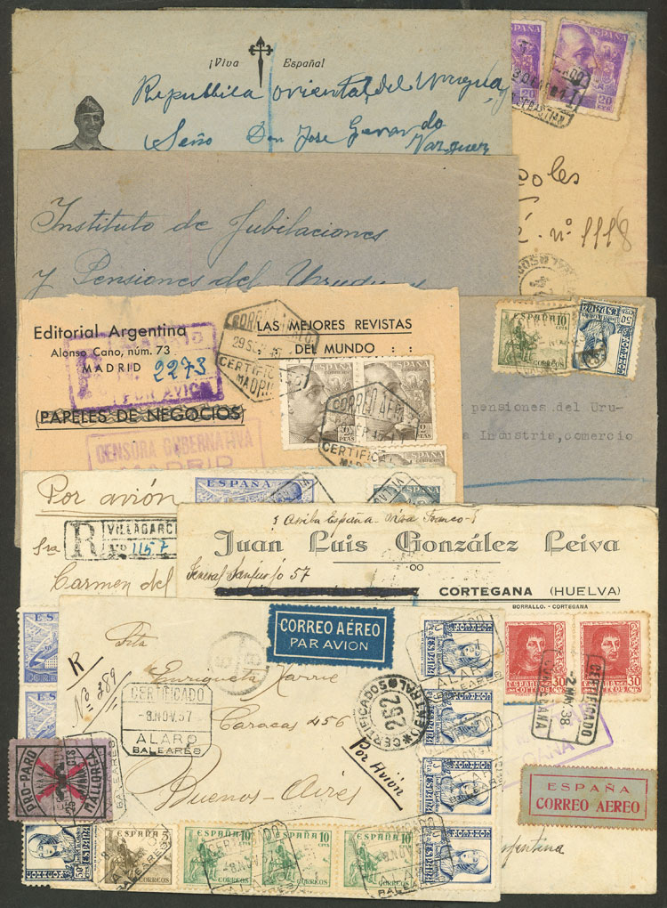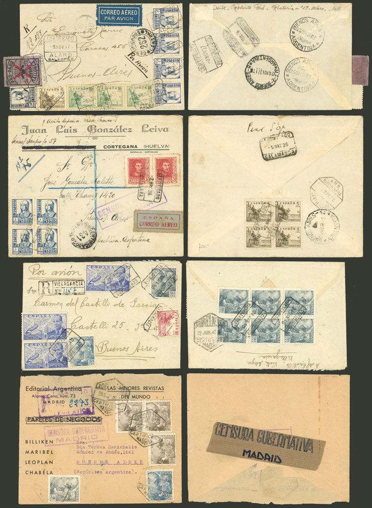 Registered covers (and almost all censored) sent between 1937 and 1946 to Argentina and Uruguay with nice frankings and interesting censor marks, in general of very fine quality! IMPORTANT: Please view ALL the photos of the lot, because all the