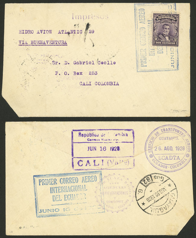 16/JUN/1928 Guayaquil to Cali, first flight of SCADTA, cover that contained printed matter, excellent quality! (Image)
