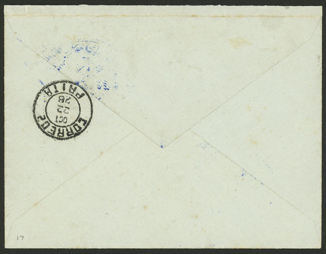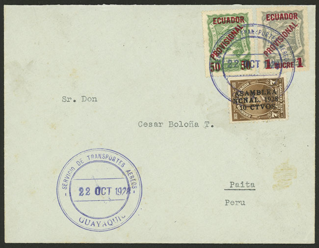 22/OC/1928 Guayaquil - Paita (Peru), first flight of SCADTA, arrival backstamp, excellent quality, rare (only 20 pieces were carried!) (Image) (Image-02)