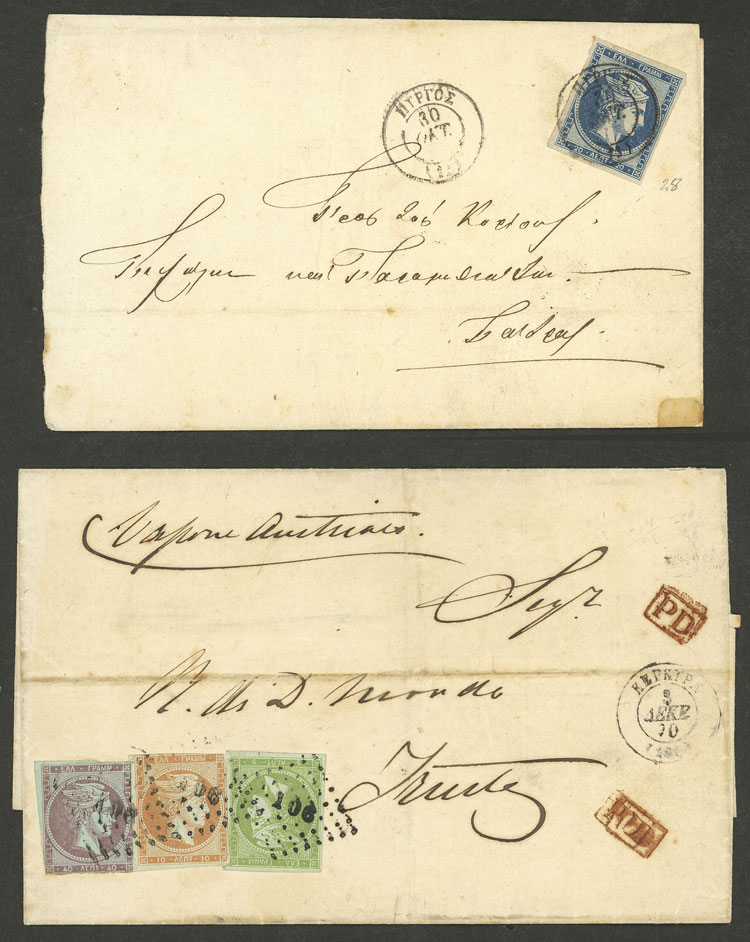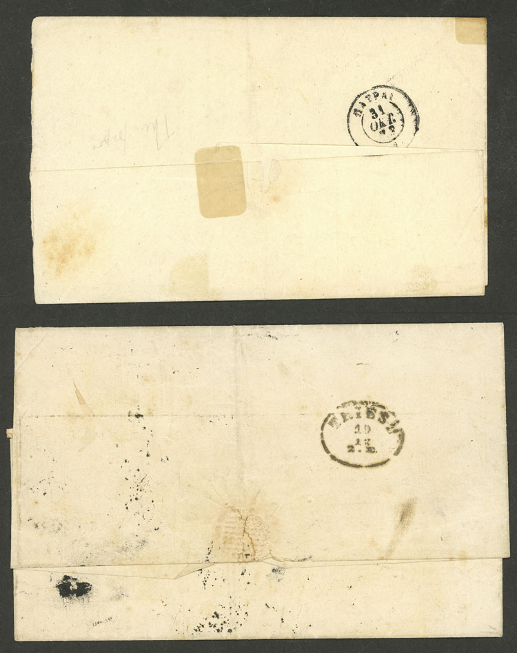 Folded covers used in 1870 and 1873, one with 3-color postage of Trieste, very nice! (Image) (Image-02)