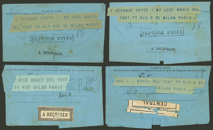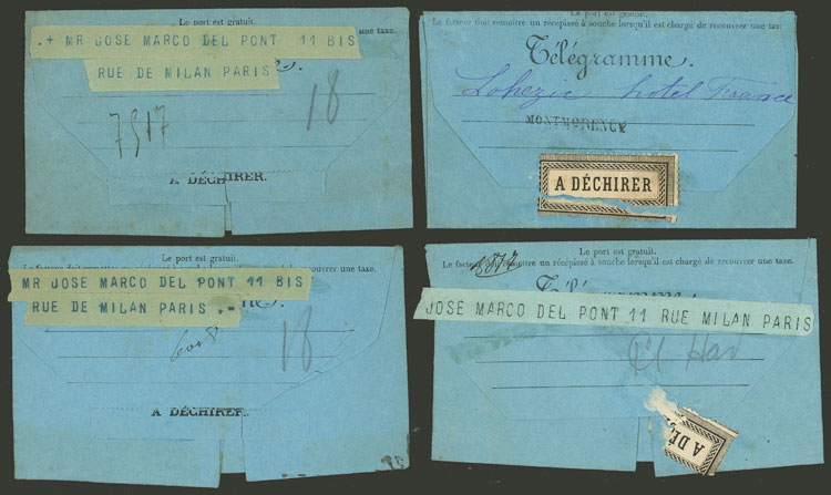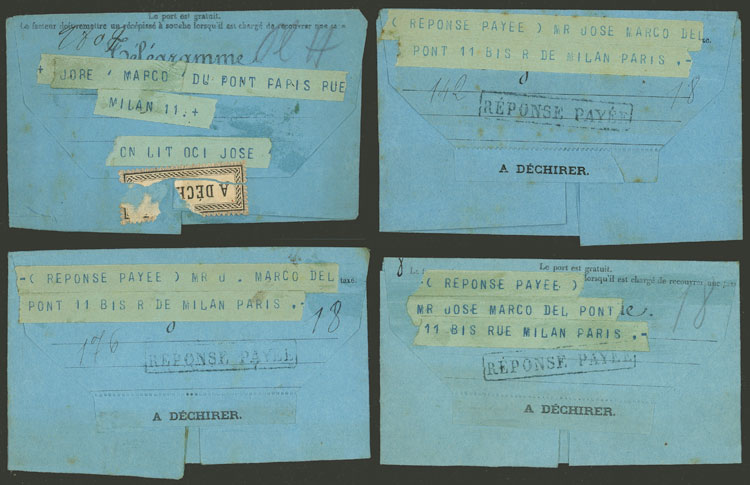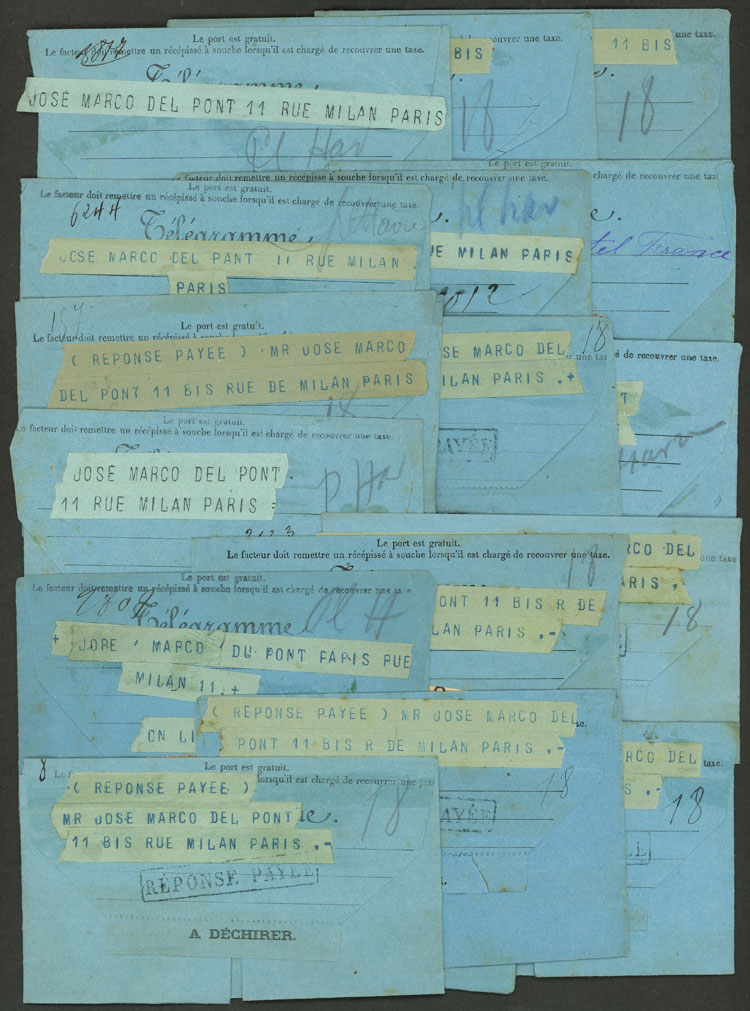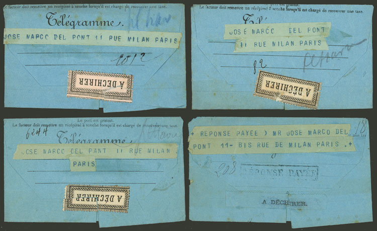 Telegrams of 1880s, most WITH PAID REPLY and almost all sent to José Marcó del Pont in Paris, from varied countries, in general of very fine quality! (Image) (Image-02)