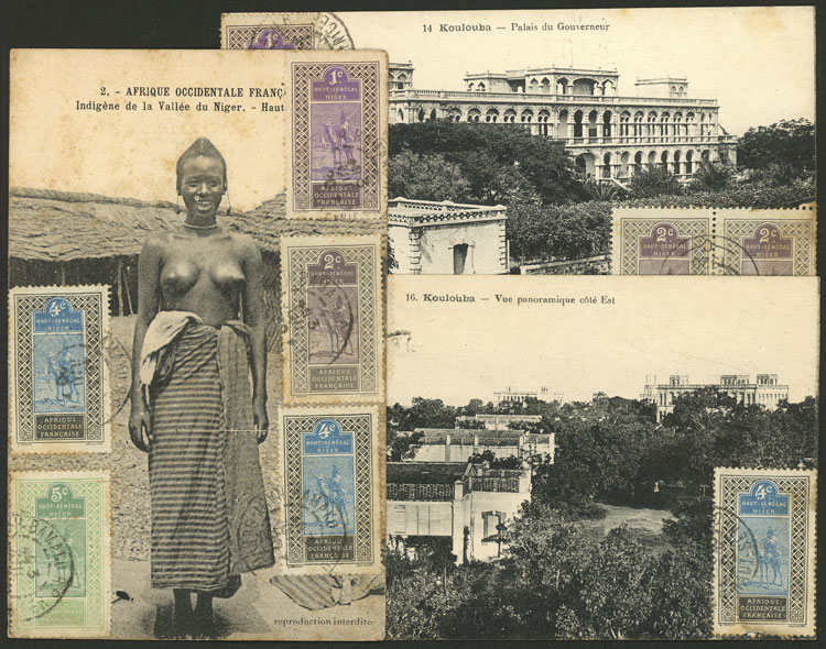 Postcards sent from Bamako (Senegal) to Argentina in 1920 franked with 5c. (2) and 16c., one with arrival mark of Buenos Aires, very attractive! ATTENTION: Please view ALL the photos of the lot, because all the content has been scanned (both sides) (Image) (Image-02)