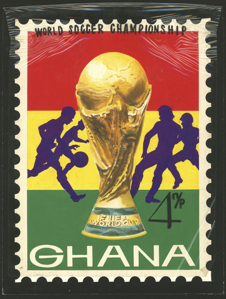 Circa 1962, original design of an unissued stamp of 4p. commemorating the Football World Cup, illustrated by Medina-Medina, who designed several stamps of Uruguay, UN, etc., uinique, excellent quality! (Image) (Image-02)