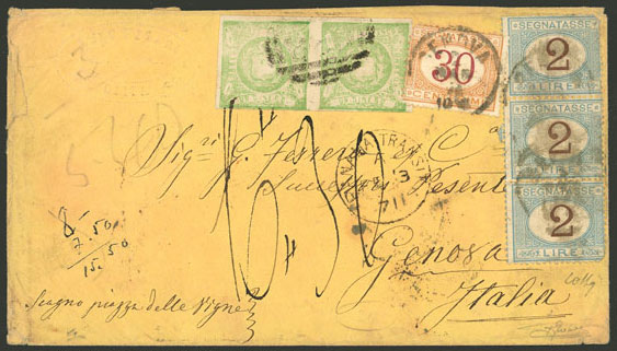 17/JA/1894, and on the back there are 2 postage due stamps of 50c. with "triangular" overprint (Sc.J26), excellent quality, rare, ex-Herbert Moll. (Image)