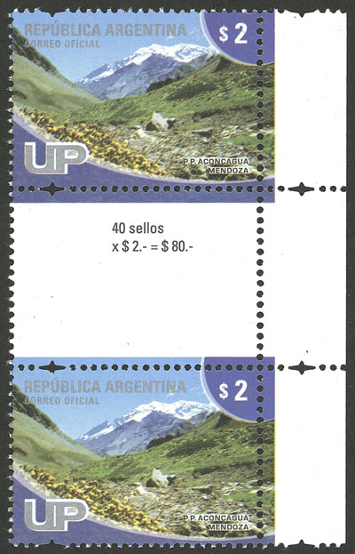 GJ.3716EN, 2008/14 2P. Aconcagua, vertical GUTTER PAIR, MNH, excellent quality, rare! (Image)