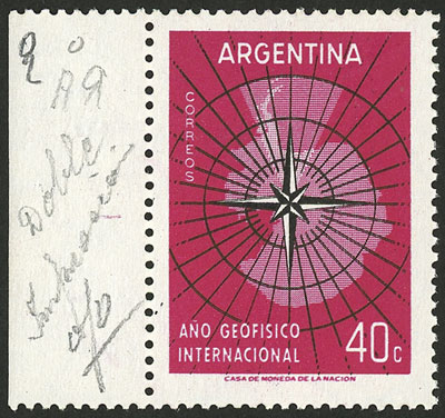FIND, RARITY: GJ.1108a, 1958 Intl. Geophysical Year, with variety COMPLETE DOUBLE IMPRESSION of both colors, MNH, excellent quality! There are 20 examples recently found, this variety will be included in the next edition of the GJ catalog as GJ.1108a