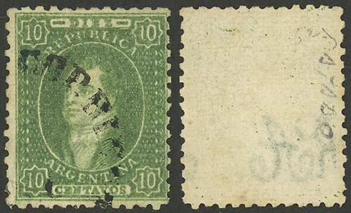 frequently offered by international auction houses or stamp dealers as GJ.18 or Yvert/Scott 10, which are much rarer and expensive, I have even seen them being offered with certificates of "experts" in classic Argentina philately!! (Image)
