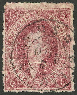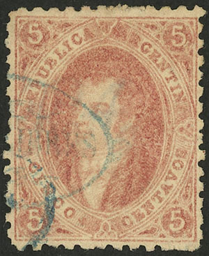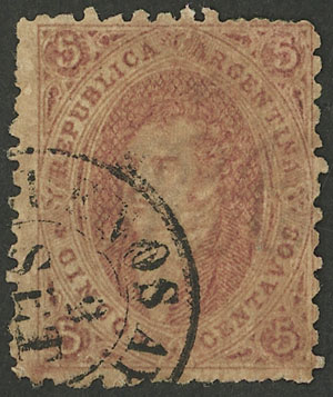 THIN PAPER variety (90 microns), used in Buenos Aires on 30/NO/1865, superb! (Image)