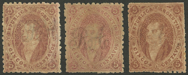 3rd printing, with varieties MULATTO and POORLY WIPED PLATE, used in Rosario, superb! (Image)