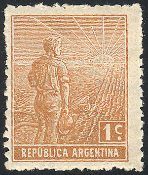 1912 1c. Plowman on German paper with HORIZONTAL honeycomb wmk, MNH (+50%), superb and very rare! (Image)