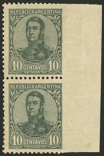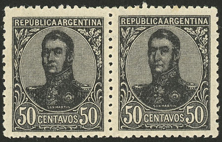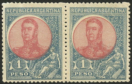 1P. San Martín in oval, pair WITH AND WITHOUT WATERMARK, VF! (Image)