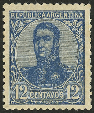 GJ.283a, 12c. San Martín in oval WITHOUT WATERMARK variety, signed by Victor Kneitschel on back, very fine quality, very rare! (Image)