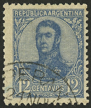 GJ.283a, 12c. San Martín in oval WITHOUT WATERMARK variety, used, very fine quality, very rare! (Image)