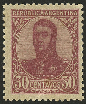 VARIETY: GJ.286a, 30c. San Martín in oval, WITHOUT WATERMARK variety, VF quality, few known! (Image)