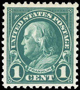 1923, 1¢ Franklin (Scott 552), o.g., never hinged, Extremely Fine to Superb, with 2025 P.S.E. certificate graded XF-SUP 95. SMQ $150. Estimate $100 - 150. (Image) (Image2)