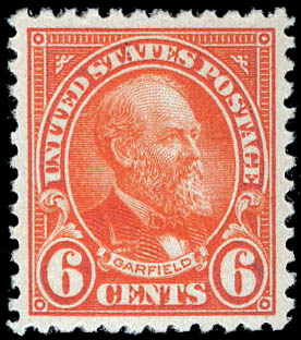 1922, 6¢ Garfield (Scott 558), an exceptionally choice beauty, o.g., hinged, Extremely Fine, with 2025 Crowe certificate graded XF 90. Scott $30. SMQ