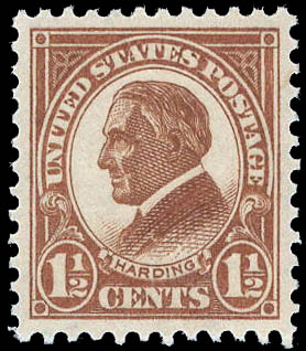 1925, 1½¢ Harding (Scott 553), a gem with essentially perfect centering, o.g., never hinged, Superb, with 2019 P.S.E. certificate graded SUP 98. SMQ
