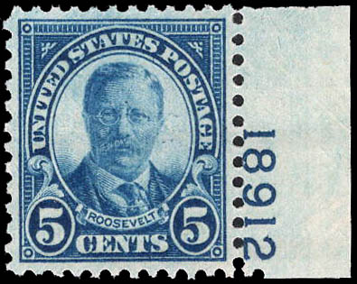 1927, 5¢ Roosevelt, rotary press printing (Scott 637), plate number single, o.g., never hinged, Extremely Fine to Superb, with 2025 P.S.E. certificate graded XF-SUP