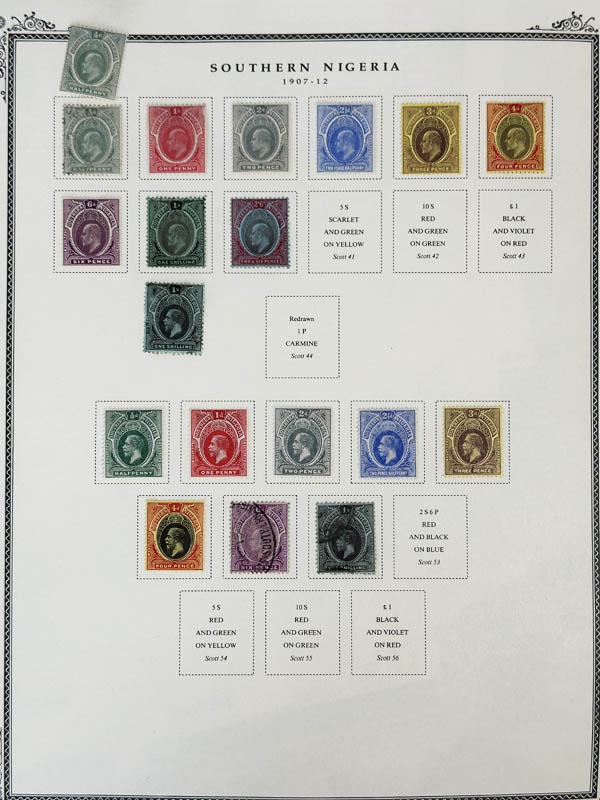 38   imageNigeria: Northern Nigeria, 1901-12, a mostly mint collection, includes five used stamps but two of them are also there in mint condition; mounted on two Scott album pages; all imaged here, o.g., hinged, Fine to Very Fine. Scott $914. (Image) (Image2) (All Images)
