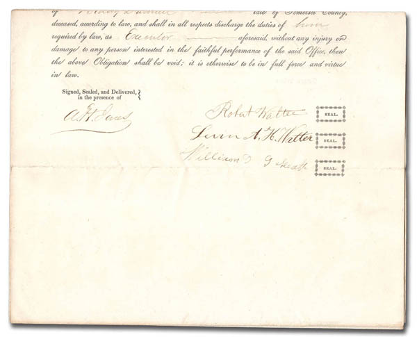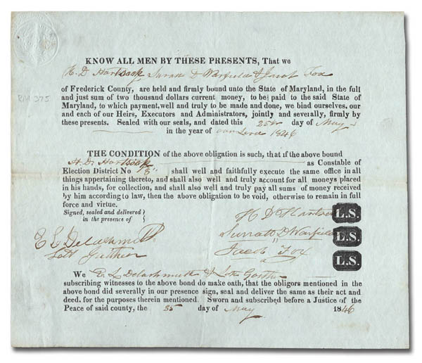 Embossed Revenue Stamped Paper, 1845-56, Maryland Issue, $1 (Scott RM375), on an 1845 Constable Bond, Fine.